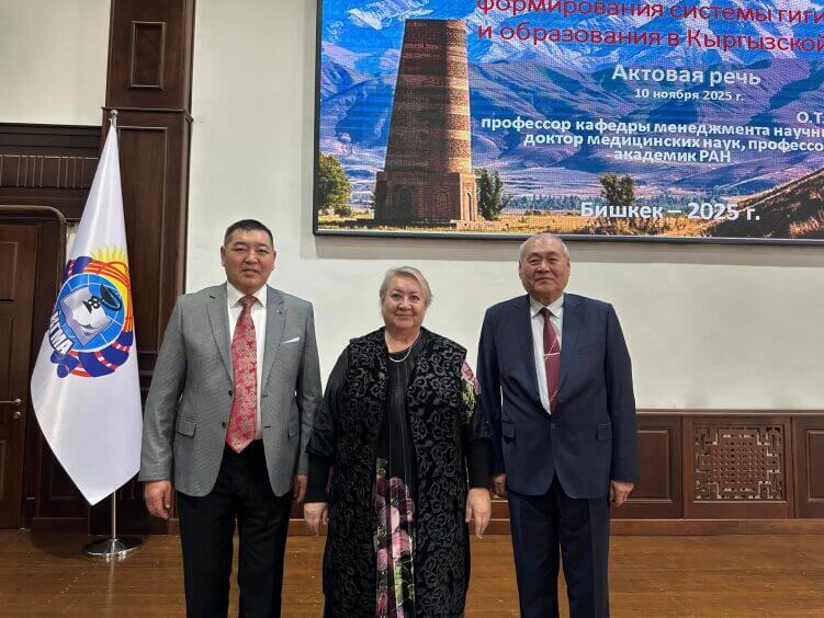 Бишкек, 10 ноября 2025 года. В Кыргызской государственной медицинской академии им. И.К. Ахунбаева состоялась актовая лекция профессора, доктора медицинских наук, академика РАН О.Т. Касымова на тему «Институционально-исторические аспекты формирования системы гигиенической науки и образования в Кыргызской Республике».