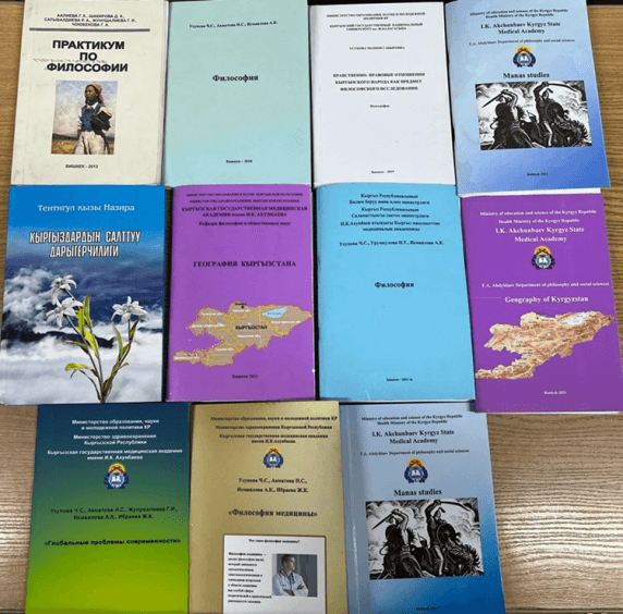 Teachers of the department take an active part in improving the educational program and increasing the effectiveness of training, taking into account modern requirements. The faculty of the department carries out research work on the theme: "Historical and philosophical aspects of folk medicine". The results of research work on the theme are reflected in the publications of scientific articles more than 50 and monographs, teaching aids: "Workshop on philosophy" in co-authorship; "Kyrgyz-Kazakh economic and cultural interrelations: experience and prospects of cooperation". Monograph. Beksultanova Ch.D.; "Ecological consciousness of ancient Kyrgyz". Monograph. Akmatova N.S.; "Kyrgyzdardyn salttuuu darygerchiligi (XIX kylymdyn ayagy XX kylymdyn bashy)". Monograph. Tentigul kyzy Nazira; Philosophy of Medicine. Methodological manual in co-authorship and others.