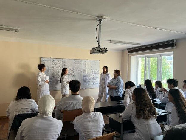 Department mentor with 2nd year medical students at the Akniet Center for Children. 2024.