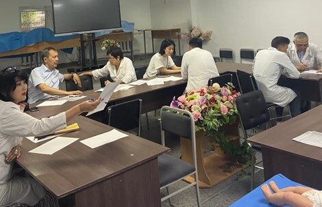 Employees of the department during the school of practical ultrasonography "KADAVER course of conduction anesthesia" for anesthesiologists, resuscitators in the Kyrgyz Republic together with doctors of the S.P. Botkin City Clinical Hospital of the DMZ of the Center for Anesthesiology and Resuscitation No. 35