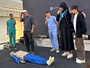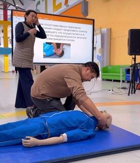 Assistants of the department Zhailoobaeva A.T. and Raimbekov Zh.A. during a master class for school teachers on first aid in emergency conditions