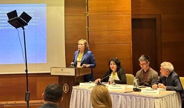 Candidate of Medical Sciences, Acting Associate Professor Tolbashiev G.U. during moderation in the breakout session "Issues of anesthesiology and IT in cardiothoracic and vascular surgery, perfusiology and transfusiology" in the IV Congress of Anesthesiologists and Resuscitators of Kazakhstan in Almaty.