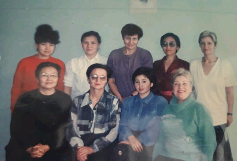 Associate Professor M.K. Mambetovanyn with students on a round at the RKIH department