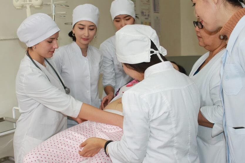 Training is conducted with the use of modern methods and technologies (interactive whiteboard, moulages, visual aids), which allows students to obtain comprehensive knowledge and preparation for professional activity. Employees of the department : Osmonalieva R.K., Zhakypova A.K., Orozalieva B.K. compiled the following teaching aids for students of the medical faculty: "Gynecology", "Reproductive system", "Pathologic obstetrics and neonatology".