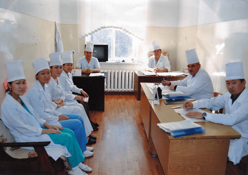 Acting Associate Professor of the department Zhoroev Minbai Niimatovich together with staff and residents