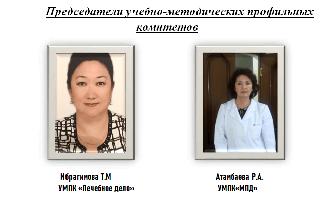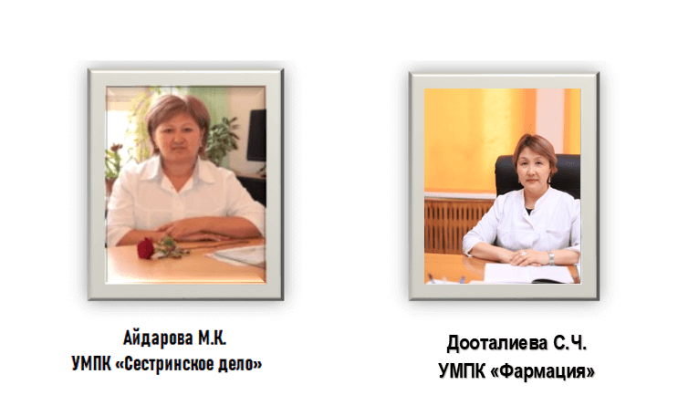 Educational and Methodical Office organized under the auspices of the first Vice-rector. Since the establishment of the KSMU and at various times, the educational process has been led by: O. V. Mokeeva; A. L. Brodsky; G. F. Ivanov; L. V. Frolova; A. A. Arbuzov; N. I. Mikhailova; N. V. Tkachenko; D. K. Mambetalieva; Ph. D., Associate Professor S. A. Abdurasulov; D. M., Professor R. D. Alymkulov; D. M., Professor A. Z. Kutmanova; D. M., N. E. Davletalieva; D. M., Professor Alymbayev E. Sh.and Ph. D., Associate Professor Stambekova K. N. Currently, the head of the educational and methodological department is associate professor Isakova G. B.