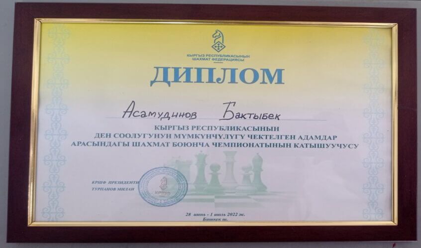 2nd year student Asamudinov Baktybek took part in the Chess Championship among people with disabilities.