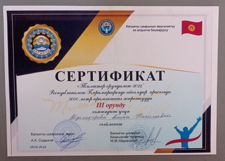 Abdykadyrova Alina took 3rd place in the women's 3000metres distance Republican Paramarathon