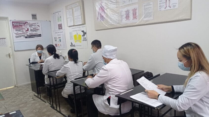 Students during a lecture on diabetes in pediatrics, teacher A. Zhumalieva