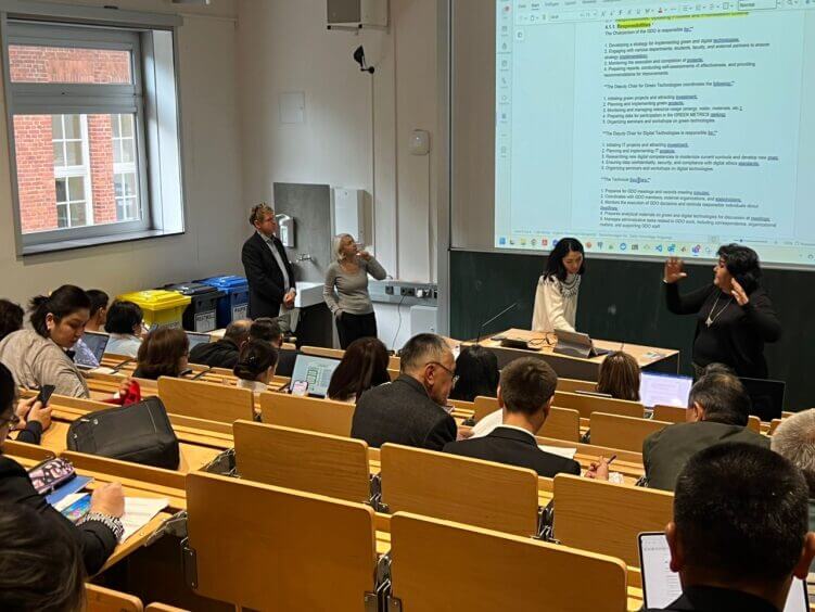 The seminar included lectures on the use of Moodle, opportunities for conducting research, and networking on sustainability issues. The first day concluded with a discussion of assignments for universities regarding the establishment of green and digital offices, led by Professor Marina Troppmann.