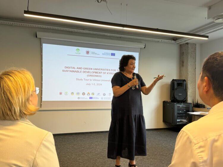 From July 1 to 5, 2024, training sessions and meetings were held at Vilnius University in Lithuania as part of the project "Green and Digital Universities for Sustainable Development of Kyrgyzstan (GREEN KG)" under the Erasmus+ program. The project aims to meet the needs of universities in expanding their knowledge and capabilities for developing and implementing policies for green and digital universities. The green university model will include the establishment of Green Digital Offices (GDO) to implement the concept of smart management aimed at minimizing negative environmental impacts, managing university operations based on energy and resource conservation, and promoting the development of green ideas in society.
