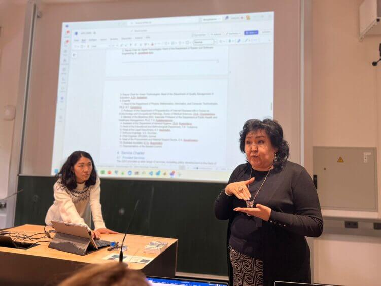 On September 1, 2025, at Issyk-Kul State University (ISU), Ksenia Bogomolets, Dean of the Faculty of Medical Engineering at KSMA, delivered a guest lecture for second-year medical students of ISU titled: “Visualization in Medicine: Technologies, Capabilities, Perspectives.”