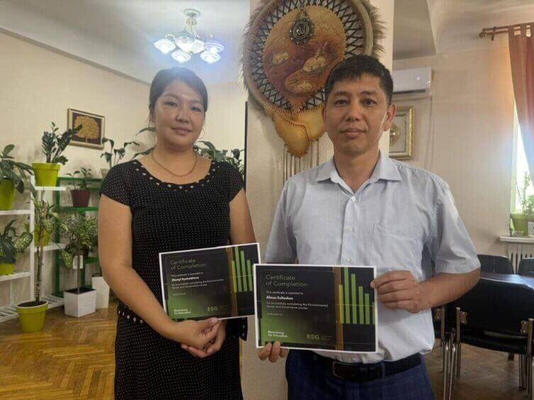 Employees of the Kyrgyz State Medical Academy (KSMA), Almaz Jusupekovich Sultashev, Head of the Department of Quality Management in Education, and Janil Bolotbekovna Ryskeldieva, Assistant at the Department of General Hygiene, demonstrated excellent results by successfully completing the Bloomberg ESG certification course. The training took place at the Bloomberg laboratory of the Faculty of Economics and Business Administration at Vilnius University.