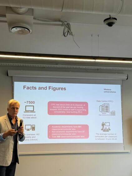 The training was organized as part of the GreenKG project, aimed at exploring best practices in green technologies and digitalization, as well as discussing opportunities for further collaboration between Vilnius University and universities in Kyrgyzstan. During the training, participants visited various research and educational centers at the university, including the library and laboratories, where they learned about advanced projects and technologies in the fields of digitalization and green policy.