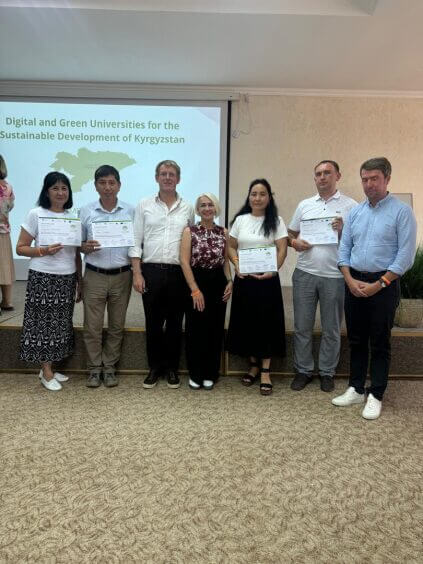 The Erasmus+ Green KG project is implemented with the support of the European Union and aims to create a network of “green” and digital offices in Kyrgyz universities, develop new courses on sustainable development, and strengthen cooperation between Kyrgyz and EU universities in sustainable educational practices.