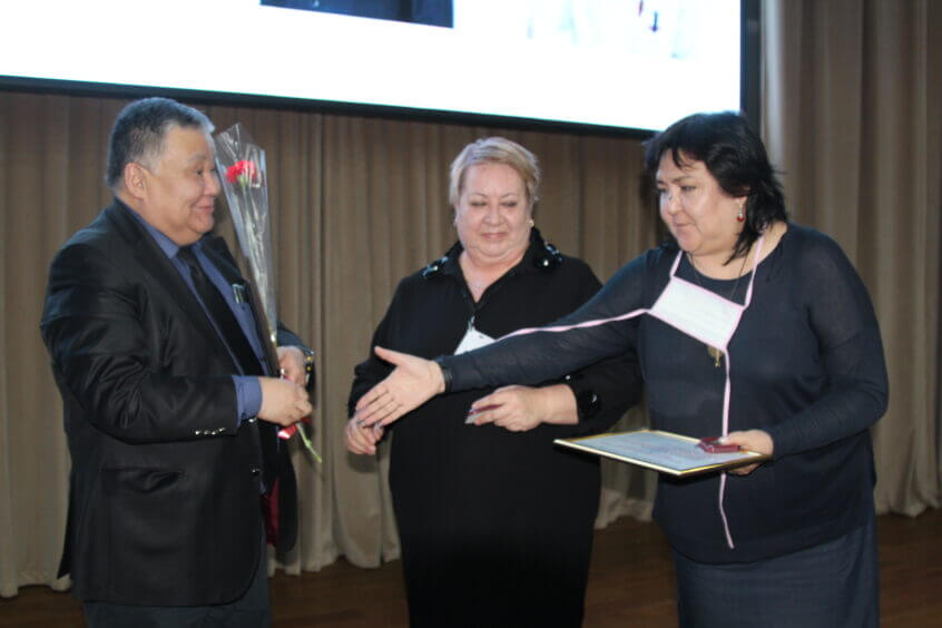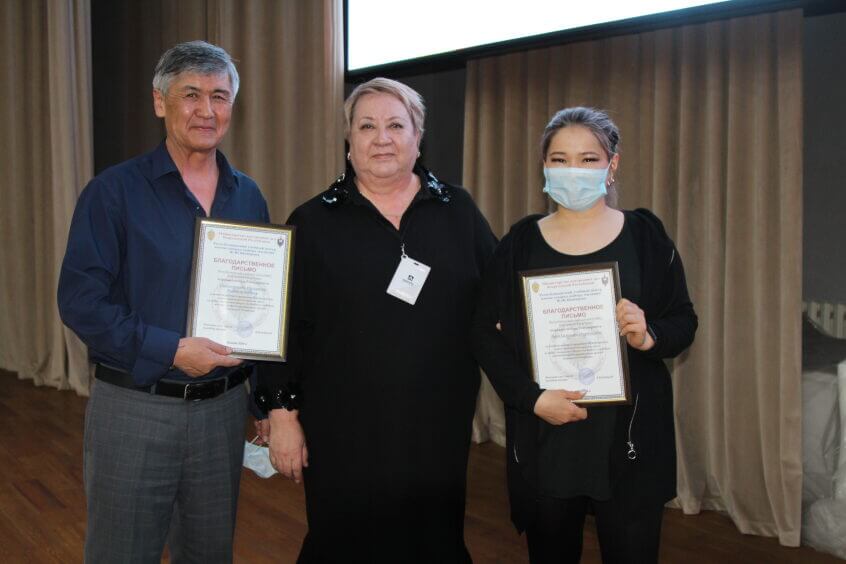 At the meeting of the Academic Council, there were other awards. Head teacher of the Department of Physical Education N. Tashpolotov and assistant professor of the Department G. Eren were awarded a Letter of Thanks by the Ministry of Internal Affairs of the Kyrgyz Republic, teachers of the Department of the Kyrgyz language Zh. Duishenalieva, Zh. Anarbayeva with badges "Yiyik til" of the society "Kyrgyz tili" for the development of the State language, 2nd year student of the Faculty of Medicine S.Tokoyev received a diploma of the first degree of the Republican competition of the International-Kyrgyz-Uzbek University for the 120th anniversary of X.Karasaeva.