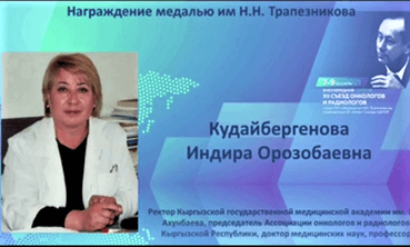 - Chairman of the Association of Oncologists and Radiologists of Kyrgyzstan, Rector of the Kyrgyz State Medical Academy named after Isa Akhunbayev Indira Kudaibergenova;