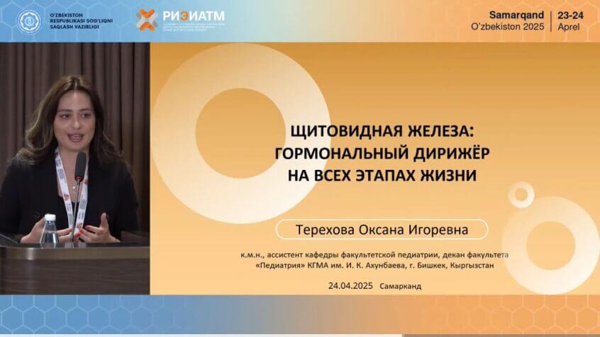 An employee of the Department of Faculty Pediatrics named after K. K. Kozhonazarov and the Dean of the Pediatrics Faculty, Oksana Igorevna Terekhova, participated in the international scientific and practical conference “Current Issues in Modern Endocrinology: From Innovation to Real Clinical Practice,” held on April 23–24, 2025, in Samarkand.