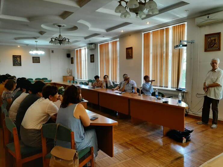 In the first half of the day, German scientists in the field of biochemistry and microbiology gave a guest lecture for teachers of the departments of the university "Microbiology, Virology and Immunology", "Biochemistry with the course of general and bioorganic chemistry named after A. D. Dzhumaliev", as well as «Medical Biology, Genetics and Parasitology". It should be noted that Mr. Kleiner first visited our republic 14 years ago as a lecturer in microbiology. And this year, he decided to resume his trip to Bishkek in order to meet with his Kyrgyz colleagues again.