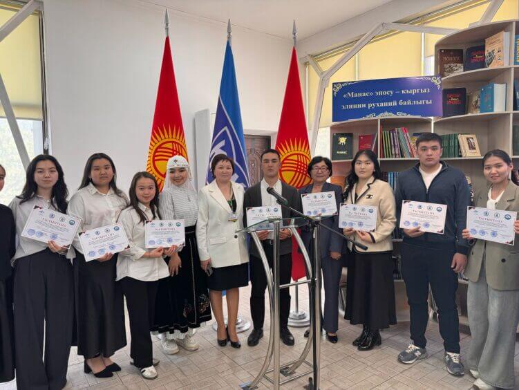 On April 11, 2025, an international scientific-practical conference titled “The Epic of Manas in the Digital Era and the State Language: Perspectives of Young Scholars” was held in honor of the 80th anniversary of the I. Arabaev Kyrgyz State University. Nine students trained by the faculty members of the Kyrgyz Language Department named after I. K. Akhunbaev participated in the conference.