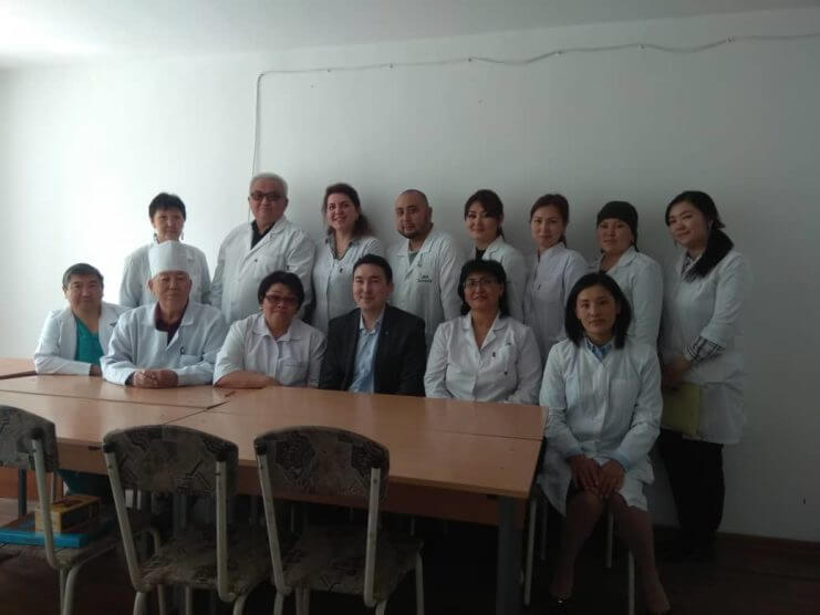 Murat Sarsembayev, assistant of the Department of Therapeutic and Orthopedic Dentistry from the West Kazakhstan State Medical University named after Marat Ospanov, conducts practical classes with students at the Department of Therapeutic Dentistry of the Medical Academy of Kyrgyzstan named after I. K. Akhunbaev from April 15 to 26, 2019.