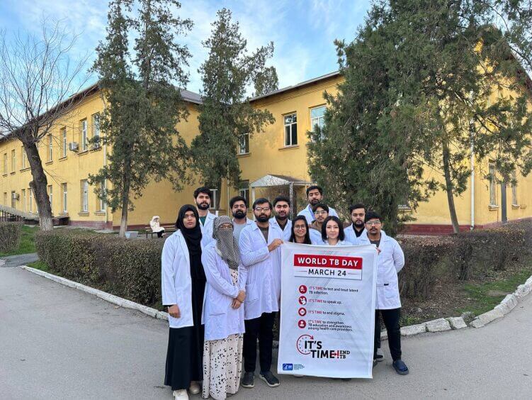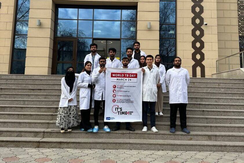 25.03.2024 assistants-prof. of the department of hospital therapy with a course of hematology Adilet Musakeev, Bermet Tagaeva, Dilfuza Atabaeva, Aigerim Janybek kyzy conducted a curatorial session with supervised groups of the 4th year of the Faculty of General Medicine with English Language of Instruction, dedicated to the World TB Day.