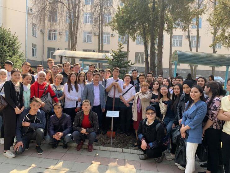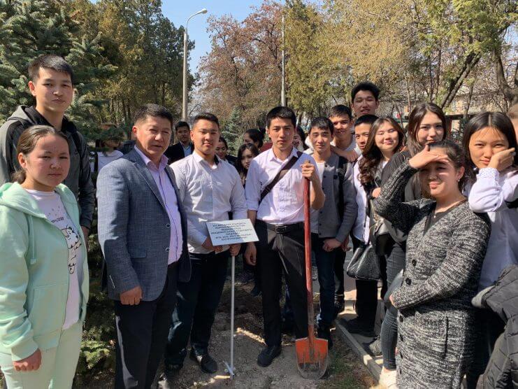 Lyceum students of the eleventh grade of KSMA planted a tree in front of the facade of the main building of the university for a long memory and installed a sign next to it