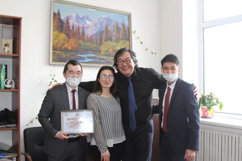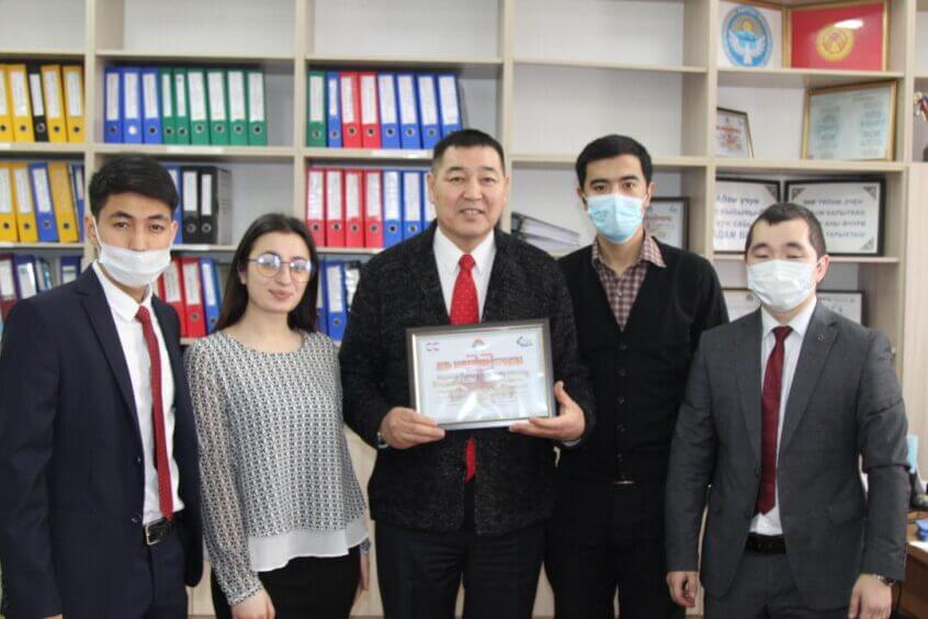 In honor of the Defender of the Fatherland Day, the Student Council and the Student Trade Union Committee of the I. K. Akhunbayev KSMU presented congratulatory certificates and personal badges to the management, vice - rectors – Professor Erkin Alymbayev, Professor Keneshbek Yrysov, deans – Esengeldi Zholdoshbekov, Ziyabidin Aidarov, Joldoshbek Sharshembiyev, Erkinbek Isakov, Anarbek Erbayev, Chairman of the Trade Union Committee of Dilshad employees-were also awarded Iman Babayev, Chairman of the Trade Union Committee of Students Altynbek Shamshiev, deputy deans-Mirbek Baysalov, Nurbek Atakulov.
