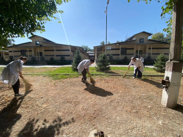 The citywide clean-up event was held on the territory of the Republican Clinical Infectious Diseases Hospital, a team of 50 teachers and students cleared the territory of the Republican Clinical Infectious Diseases Hospital.