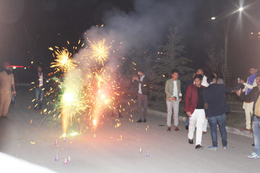 Indian students of the I. K. Akhunbayev KSMA do not change their traditions either. On November 7, 2018, in honor of the Diwali holiday, a festive show with the participation of international students from India was held at the Dasmiya restaurant. The rector of the Medical Academy, Indira Kudaibergenova, opened the festival program with her warm congratulations.