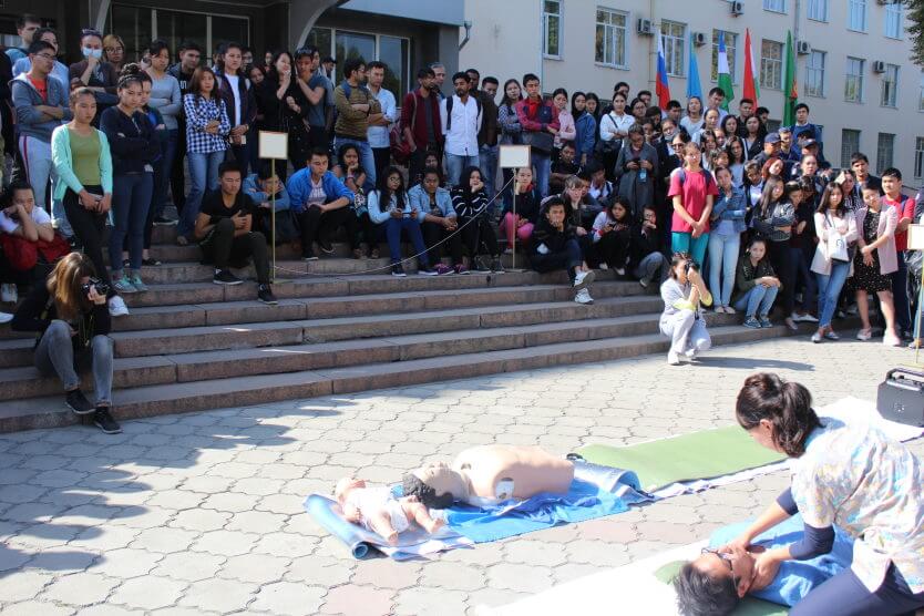 Recently, the Medical Academy of Kyrgyzstan named after I. K. Akhunbayev held a training event dedicated to the World Day of First Aid, which is celebrated annually on the second Saturday of September. One of the main organizers of this event is the Scientific Society of Young Scientists and Students of KSMA.