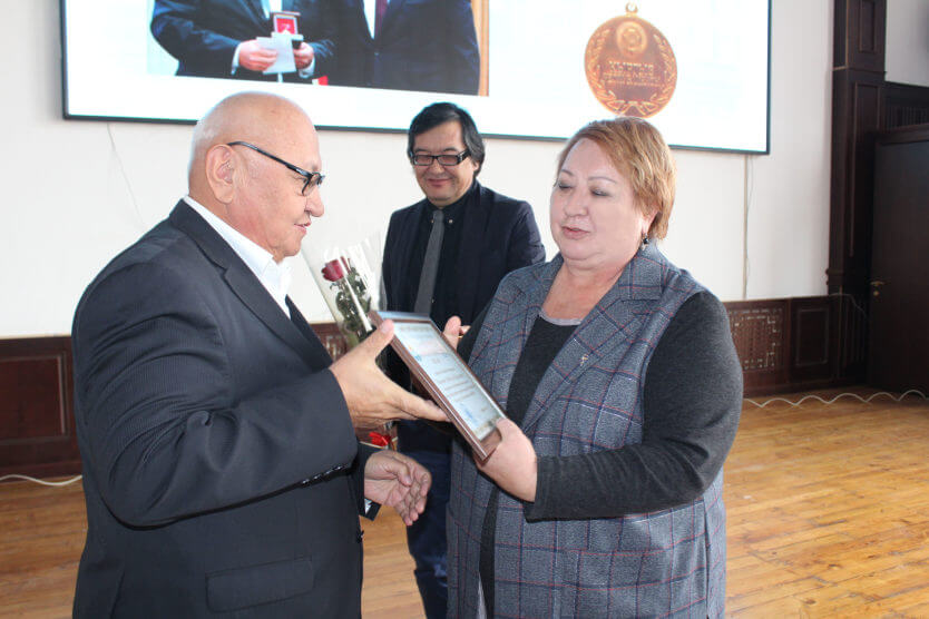 The rector of the university, Professor Indira Kudaibergenova presented letters of thanks to Corresponding Member of the National Academy of Sciences of the Kyrgyz Republic, Head of the Department of Faculty Surgery named after Academician Kakish Ryskulova Rakhatbek Omorov, Professor, Head of the Department of Otolaryngology Vadim Nasyrov, press secretary, writer Abibilla Pazylov.
