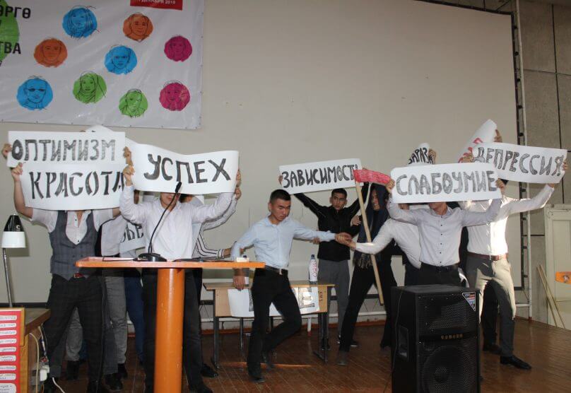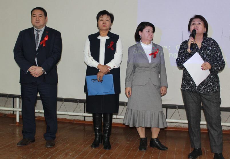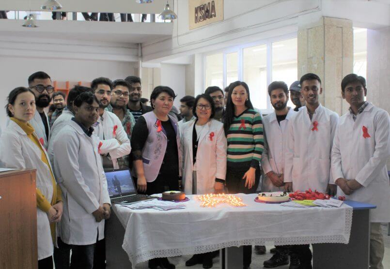 December 5, 2019 in the morphological building of the I.K. Akhunbayev hosted a flash mob dedicated to World AIDS Day and World Volunteers Day called “Communities for Change”. During the event, the Vice-Rector of the Medical Academy, Professor Keneshbek Yrysov, Director of the Republican AIDS Center Umutkan Chokmorova, Chief Specialist of the Ministry of Health of the Kyrgyz Republic Sharipa Suvanalieva, WHO Representative in Kyrgyzstan Nazira Artykova and doctor of the AIDS RC Tostukov Erkin.