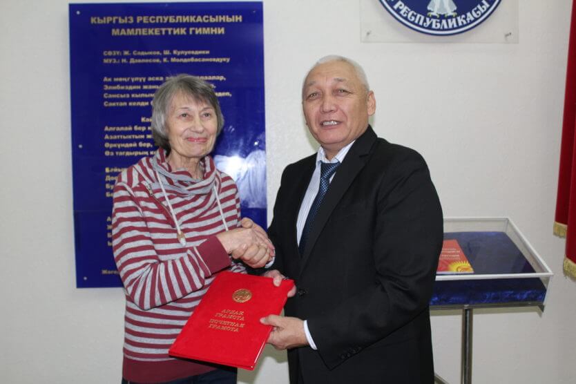 Today, on October 16, 2018, the Director of the Archive Agency of the GRS of the Kyrgyz Republic, Orunbay Akhmedov, presented the Certificate of Honor of his department to the head of the archive of the Medical Academy of Kyrgyzstan named after I. K. Akhunbayev Komleva Svetlana Fyodorovna with best wishes. She was awarded for many years of exemplary work in the field of archival affairs.