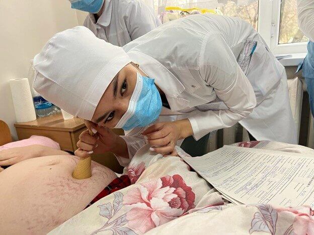 Students of the 4th year of the General medicine, on the morning rounds of patients in the maternity hospital No.2, 2023.