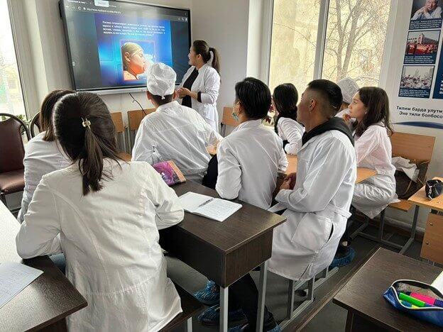 Training is conducted with the use of modern methods and technologies (interactive whiteboard, moulages, visual aids), which allows students to obtain comprehensive knowledge and preparation for professional activity. Employees of the department : Osmonalieva R.K., Zhakypova A.K., Orozalieva B.K. compiled the following teaching aids for students of the medical faculty: "Gynecology", "Reproductive system", "Pathologic obstetrics and neonatology".