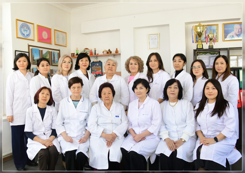 From left to right, top row: Lab. ass. Cholpon, ass. Subanova N.A., Candidate of medical sciences, Associate Professor Zhakypova A.K., Candidate of Medical Sciences, Associate Professor Orozalieva B.K., ass.. Satybaldieva A., head teacher Stakeeva Ch.A., ass. Zholdoshbekova G.Zh., ass. Amiraeva Zh.N., ass. Aitbek k. D., ass. Mamatysaev A.M., Candidate of Medical Sciences, Associate Professor Osmonalieva R.K., Head of Department Kalkanbaeva Ch.K., ass. Lisitsyna O.I., ass. Toguzbaeva B.D., ass. Ashimaliev M.T.