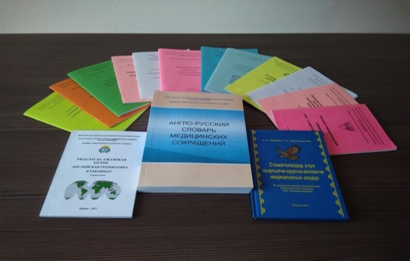 Преподаватели кафедры работают над научно-исследовательской темой «Формирование профессиональной иноязычной компетенции студентов-медиков», в рамках которой за последние 5 лет издано более 40 методических пособий и рекомендаций: в том числе «Словарь медицинских сокращений» (Замалетдинова Г.С., Молдокулова Л.Д.), «Учебник английского языка для медиков» (Замалетдинова Г.С.), «Кыргызско-русский словарь для стоматологов» (Амираев У.А., Замалетдинова Г.С.); “Русско-латинско-кыргызско-английский словарь по системе классификации лекарственных растений” (Мураталиева А.Д., Замалетдинова Г.С., Мурзабаева Ч.А., Исмаилова Д.Н., Капаров Б.М.), “Atlas of Histology, Cytology and Embryology” совместно с кафедрой гистологии, «Немецкий язык для студентов-медиков» (Тентимишева Б.Д., Сыдыкова Ж.Ж.). Преподавателями секции латинского языка изданы « Латын тили» для студентов кыргызскоязычных групп, «Тесты по латинскому языку для СРС» на русском и английском языках (Тентимишева Б.Д.. Колбаева М.Ж., Дюшекеева А.К.) «Сборник лексико-грамматических тестов по немецкому языку», (Тентимишева Б.Д., Сыдыкова Ж.Ж.), «Сборник лексико-грамматических тестов по анатомической терминологии на кыргызском языке» (Тентимишева Б.Д., Дюшекеева А.К., Мамытканова Е.А., Казыбекова Р.Б.,), «Сборник лексико-грамматических тестов по химико-фармацевтической терминологии на кыргызском языке (Тентимишева Б.Д., Казыбекова Р.Б., Мамытканова Е.А.), «Учебное пособие по английскому языку для студентов 1 курса фармацевтического факультета» (Замалетдинова Г.С., Байгазиева Н.К.); «Учебное пособие по английскому языку для студентов 1 курса факультета медицинской инженерии» (Замалетдинова Г.С., Байгазиева Н.К., Эрназарова У.А., Байжигитова А.А.) Кафедрой редактируются методические пособия на английском языке и оказывается помощь в переводе на английский язык сайта КГМА.