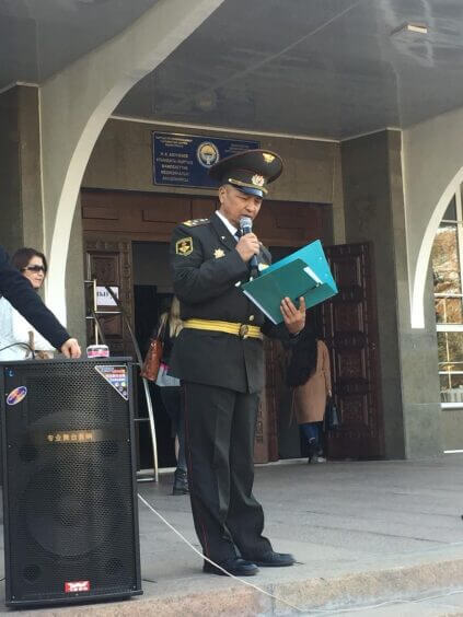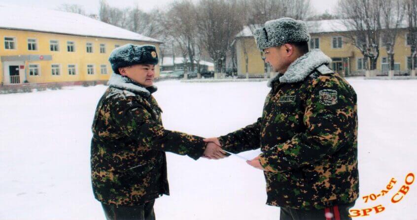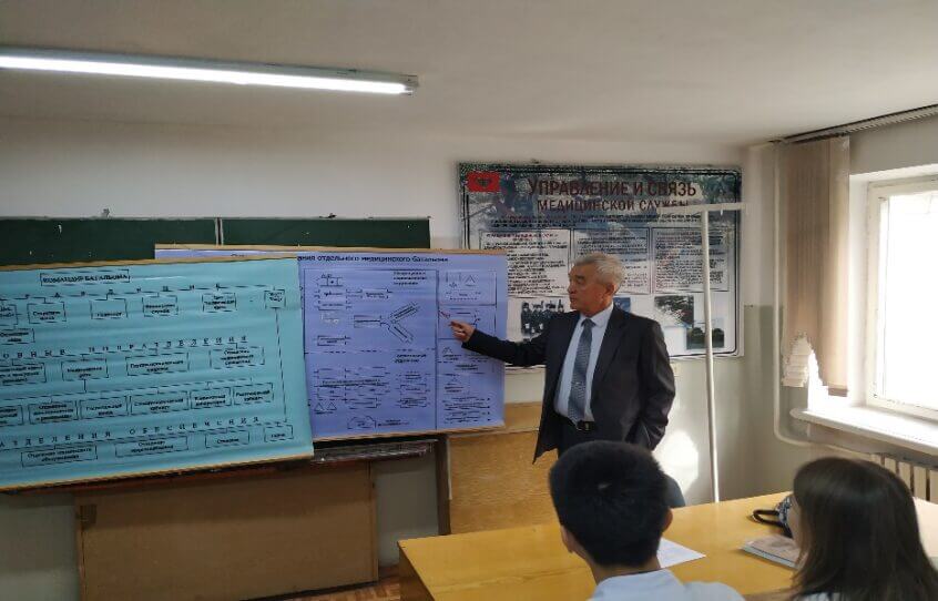 Карымбаев А.К на занятии по Общевойсковой подготовке.