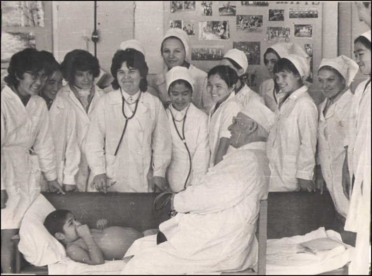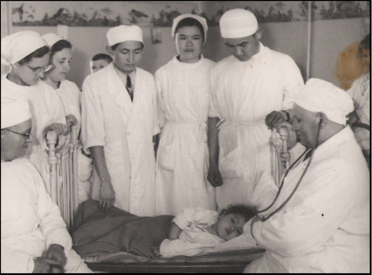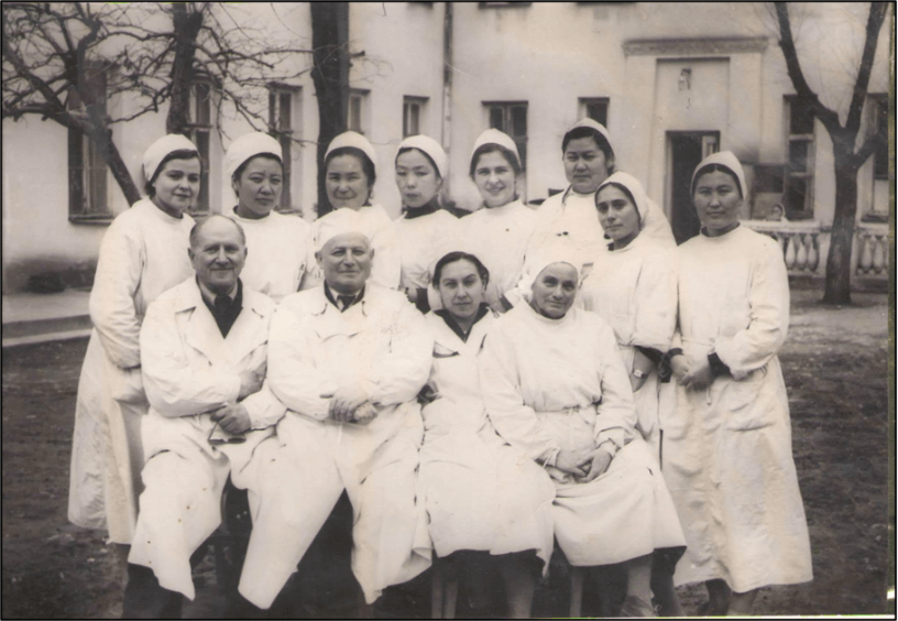 В 1942 году эвакуированный в Киргизию ленинградский профессор Л.О. Финкельштейн создает подразделение, задачей которого стала подготовка специалистов детского здравоохранения. Низкий поклон ученым-педиатрам, в суровое время заботившихся о здоровье послевоенного поколения! Л.О. Финкельштейн, А.Т. Бальмагия, Б.Г. Мерсон – кто помнит сейчас эти имена? Не сохранилось даже фотографий этих людей. Однако именно они, представители ленинградской научной школы, стояли у истоков национальной педиатрической службы Кыргызской Республики.