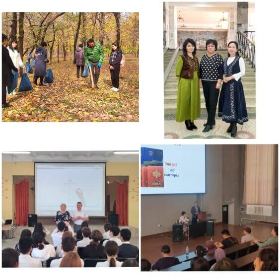 Сотрудники кафедры на разных мероприятиях ("чистый город", на празднике Нооруз, "день здоровья", "день кыргызского языка").