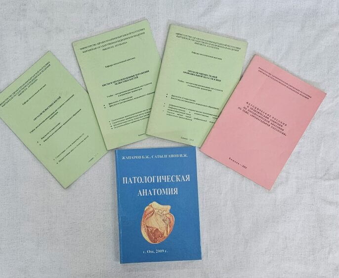 Совместно с ОшГУ издан учебник «Патологическая анатомия» в двух томах (2009 г), авторы: Б.Ж.Жапаров, И.Ж.Сатылганов, Д.Б.Жапарова, С.А. Исмаилова.
