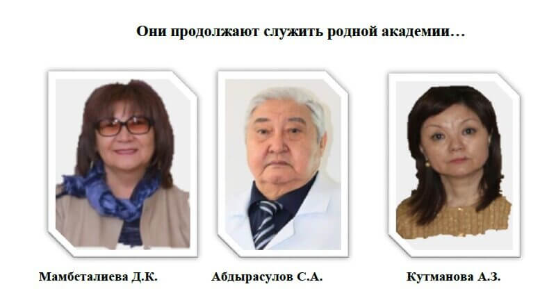 Наркомздрав Киргизской ССР приветствует врачей первого выпуска, желает им плодотворной и успешной работы и выражает уверенность, что молодые врачи первого выпуска КГМИ с честью будет нести почетное звание советского врача.