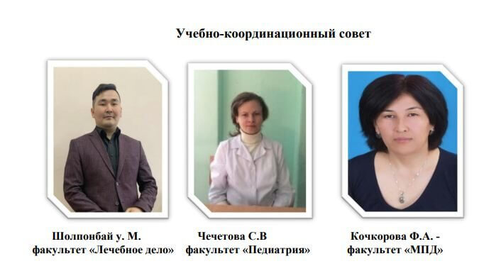 - Сектор планирования и методического обеспечения образовательных программ (ПиМООП)- планирует и реализует методическое обеспечение основных образовательных программ по специалитету согласно ГОС в соответствии с международными критериями и нацеленностью компетенций выпускника на приоритеты в системе здравоохранения КР на основе изучения принципов высшего профессионального образования.