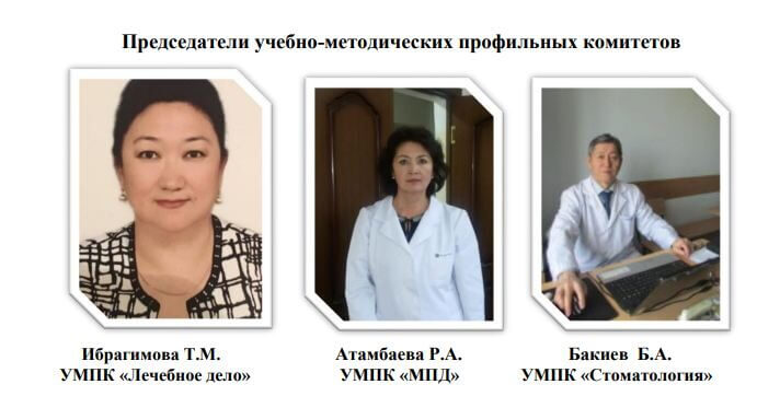 УМО организовано под эгидой первого проректора с момента создания КГМА и в разное время учебным процессом руководили: О.В. Мокеева; А.Л. Бродский; Г.Ф. Иванов; Л.В. Фролова; А.А. Арбузов; Н.И. Михайлова; Н.В. Ткаченко; Д.К. Мамбеталиева; к.м.н., доцент С.А. Абдурасулов; д.м.н., профессор Р.Д. Алымкулов; д.м.н., профессор А.З. Кутманова; д.м.н. Н.Э. Давлеталиева; д.м.н., профессор Алымбаев Э.Ш., к.м.н., доцент Стамбекова К.Н. и в настоящее время начальник Учебно-методического отдела доцент Исакова Г.Б.