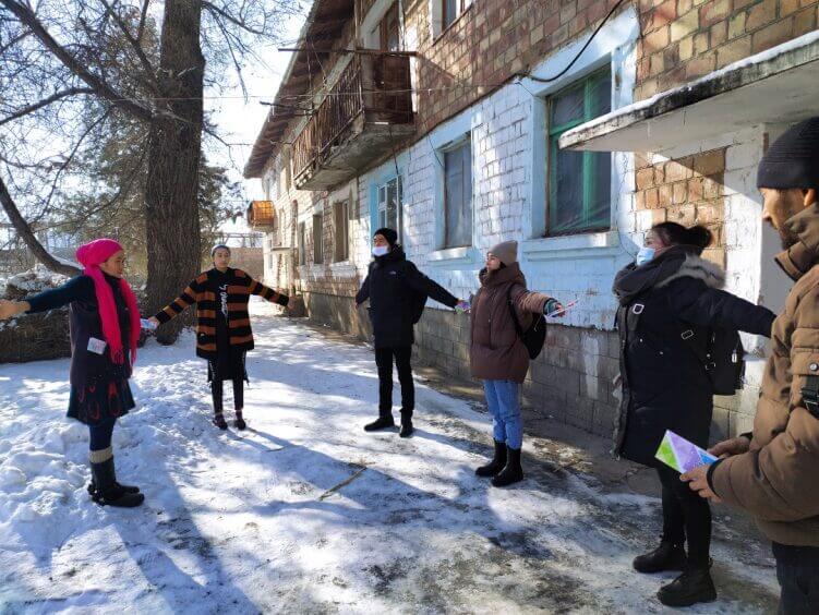 «Дышите легко». В рамках волонтерской практики в селах Виноградное, Васильевка прошли первые в жизни уличные сессии студентов 6-й и 9-й групп первого курса лечебного факультета КГМА им.Ахунбаева. Студенты-волонтеры учатся работать непосредственно с людьми, предоставляют информацию по профилактике COVID-19, а также вместе с ними делают комплекс дыхательных упражнений для укрепления диафрагмы, увеличения газообмена в легких. Очень интересный и полезный опыт приобрели благодаря сотрудничеству с проектом КАП (Консультативная-амбулаторная поддержка) международной организации «Врачи без границ». Наши студенты теперь готовы обучать своих близких, родных и друзей простым, но важным упражнениям, продвигая знания в массы.