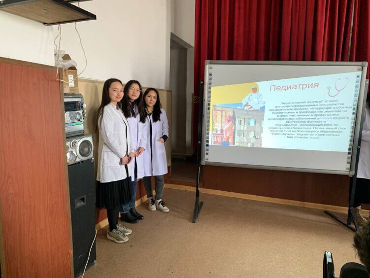 Студенты КГМА провели встречи со школьниками профориентационного характера Студенты Лечебное дело 1 во главе с заместителем декана Азамат Кылчыкбаевым посетили Новопокровскую среднюю школу №3. Входе встречи студенты вуза провели открытые встречи со школьниками профориентационного характера. Ученики выразили получили информацию о вузе, о профессиях медицинского профиля, об условиях поступления и т.д.