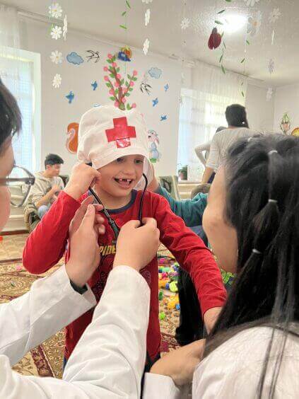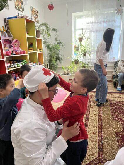 Студенты 2 курса совместно с деканатом Лечебного дела №1 и кафедрой биохимии с курсом общей и биоорганической химии им. Джумалиева А. Д. посетили республиканский специализированный центр реабилитации детей и семьи, с целью оказания первичной социально-медицинской помощи нуждающимся детям.
