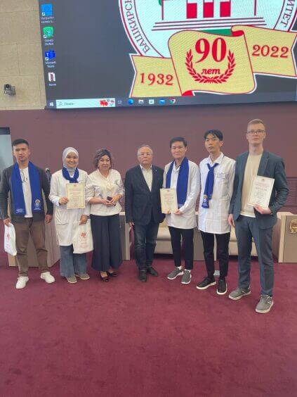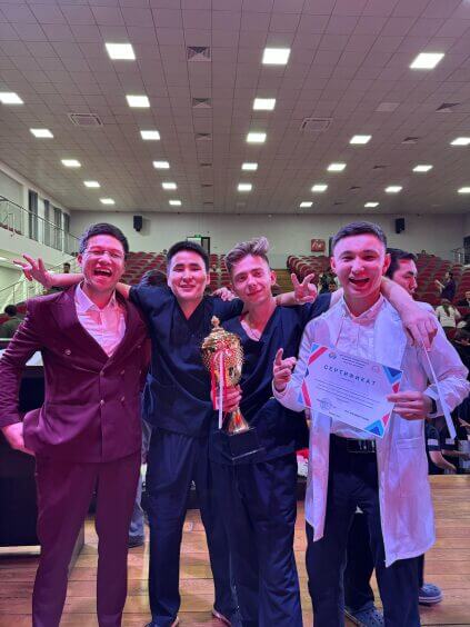 8-14 апреля 2024 года в прошедшей XXXII Московской международной студенческой хирургической олимпиаде имени академика М. И. Перельмана студенты факультета Лечебное дело №1 Вахидов Али, Пирматов Жангазы, Көчкөнов Азамат прошли в финал и принимая активное участие защищали честь факультета в Москве.