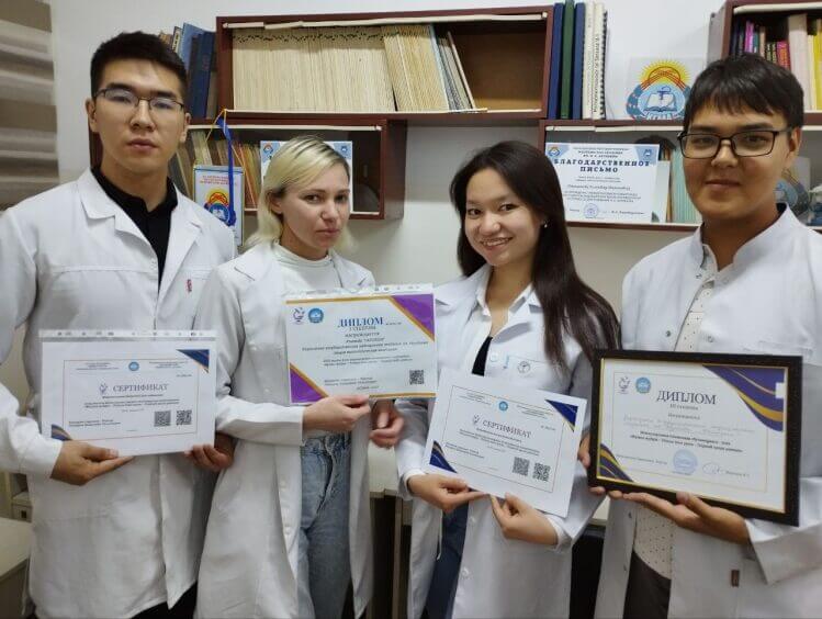 Команда "Дофаминовый рай" получили 1 место в конкурсе "Лучший университет", а также получили награду в номинации "Преодолевая границы". Научный руководиетль: д.б.н., доц., зав.каф. биохимии с курсом общей и биооргонической химии им. А.Дж.Джумалиева, Махмудова Жылдыз Ахматова. Список команды: Айдаров Э.А., Бекмурзаев А.Б., Толонбаева Э.Ы., Усонов Я.У. - студенты 3 курса, факультета Лечебное дело №1